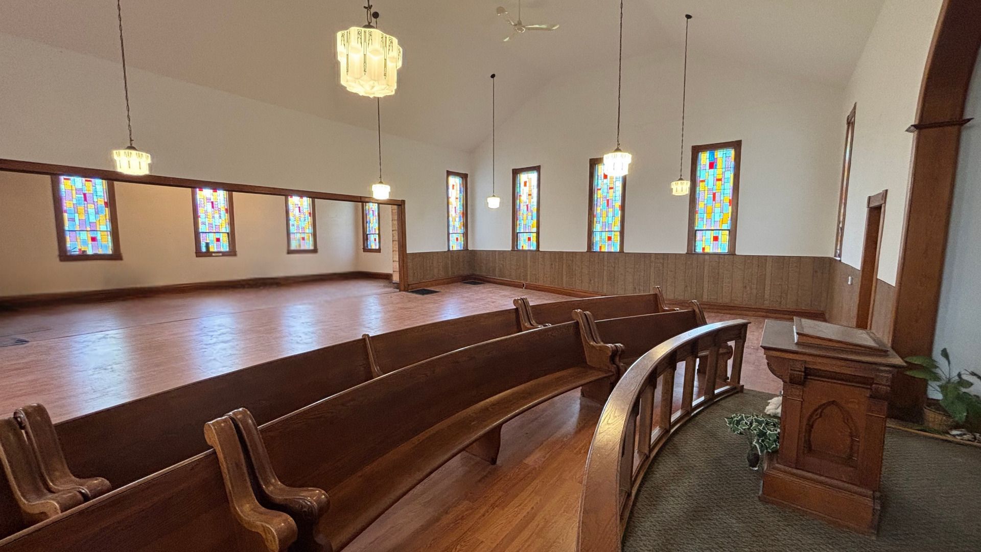 This is a once in a lifetime opportunity to own a unique, historical property, preserved and renovated to its former glory! This former church is over 4,900 sq ft with two levels. The high ceilings, original stained-glass windows, beautiful woodwork, church pews and altar remain in excellent condition. A complete rehab was completed over a year's time and completed in 2017, bringing this building back to life. Updates include but are not limited to: new drywall, insulation, electrical, flooring, roof, paint, public restroom, furnace and air conditioner. An additional kitchen space and half bath are ready for your finishing touches on the lower level. Schedule a showing today to experience the beauty of this building!